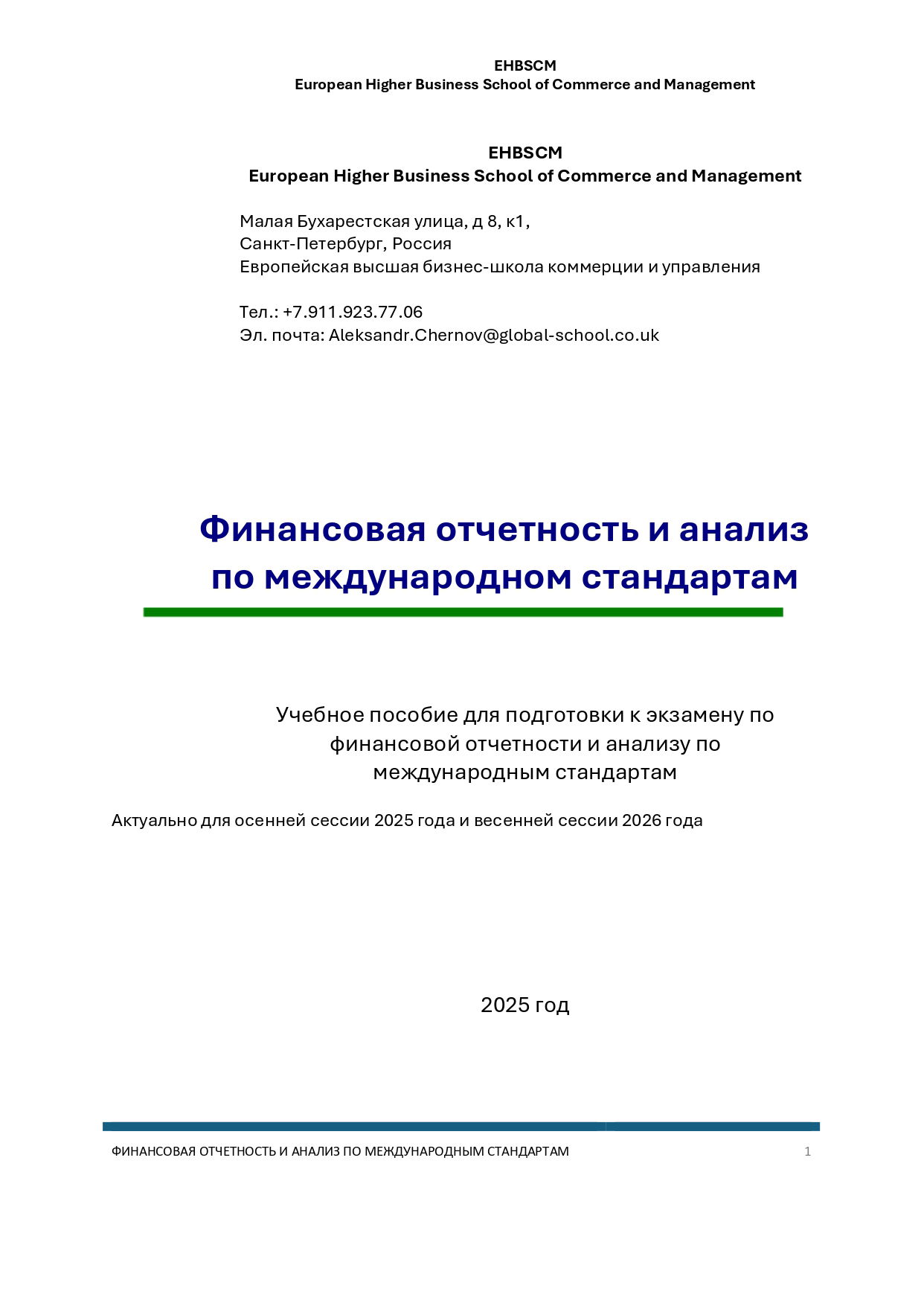 "Финансовая отчетность и анализ по международным стандартам"